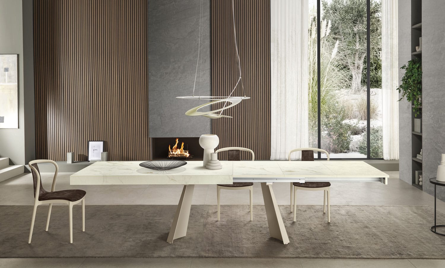 Tavolo allungabile lateralmente da un lato, piano in un unico pezzo a lavorazione “Folding” su tre lati, altezza bordo laterale 90mm, allunghe contenute all’interno del tavolo, piano disponibile in Nobilitato (solo versione 160.31 RA), Laminato o Impiallacciato Rovere, versione “Rovere Spaccato” (RSP) vero legno vecchio; base in metallo, sistema di allungo telescopico sincronizzato interamente in Alluminio, verniciati a polvere epossidica o smalti materici, dotato di piedini regolabili.
