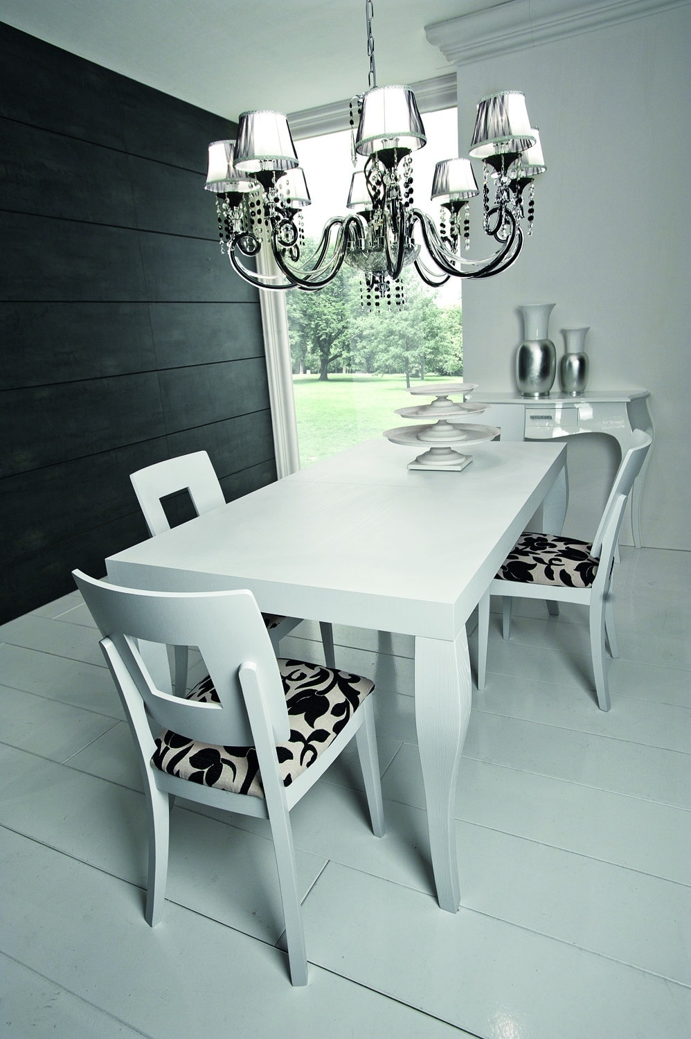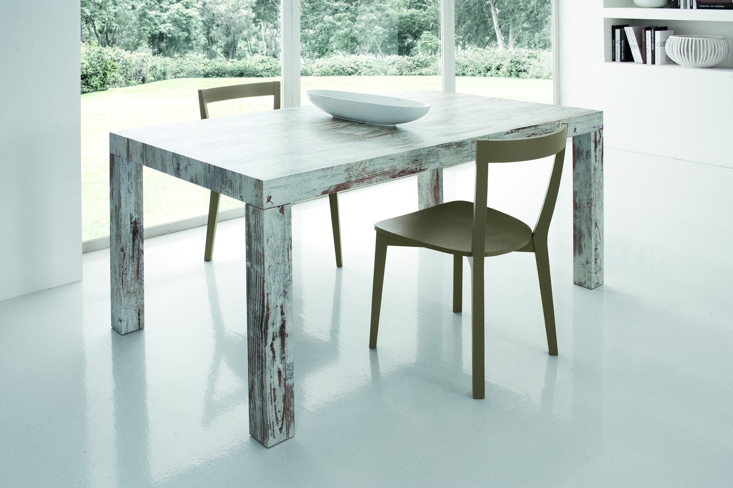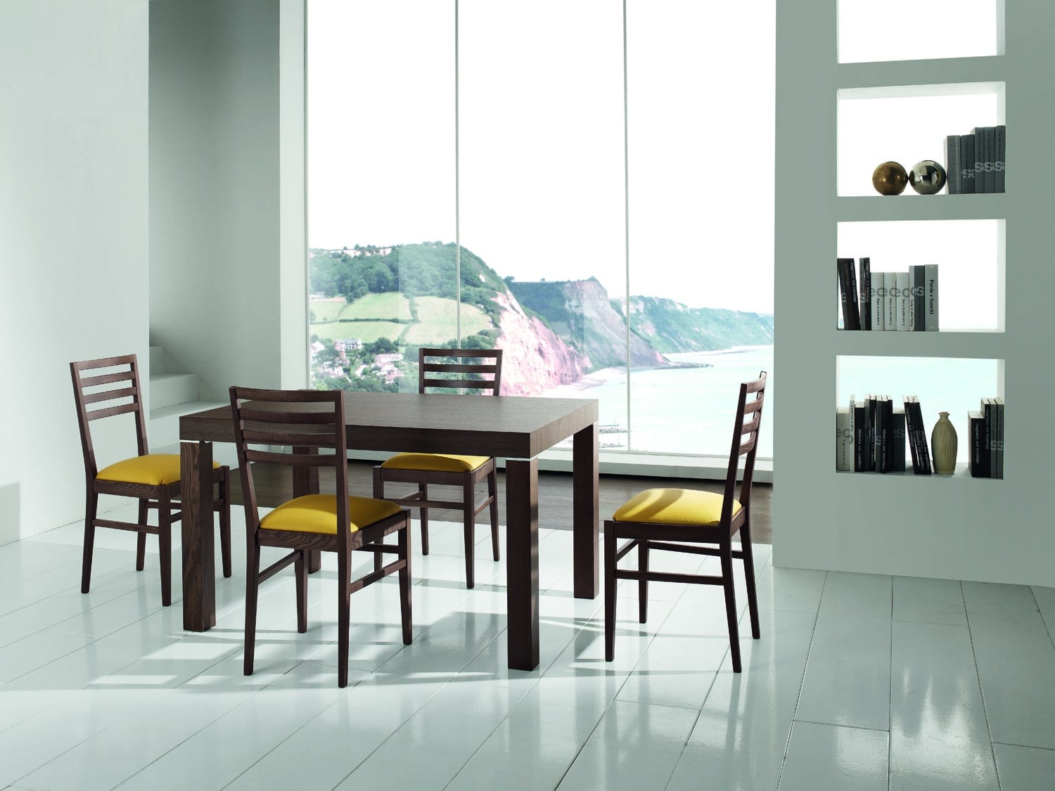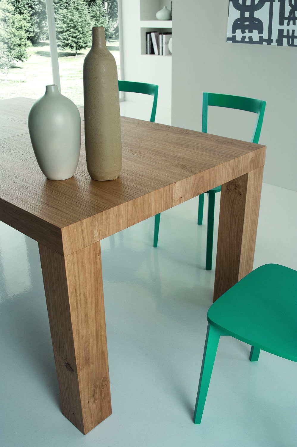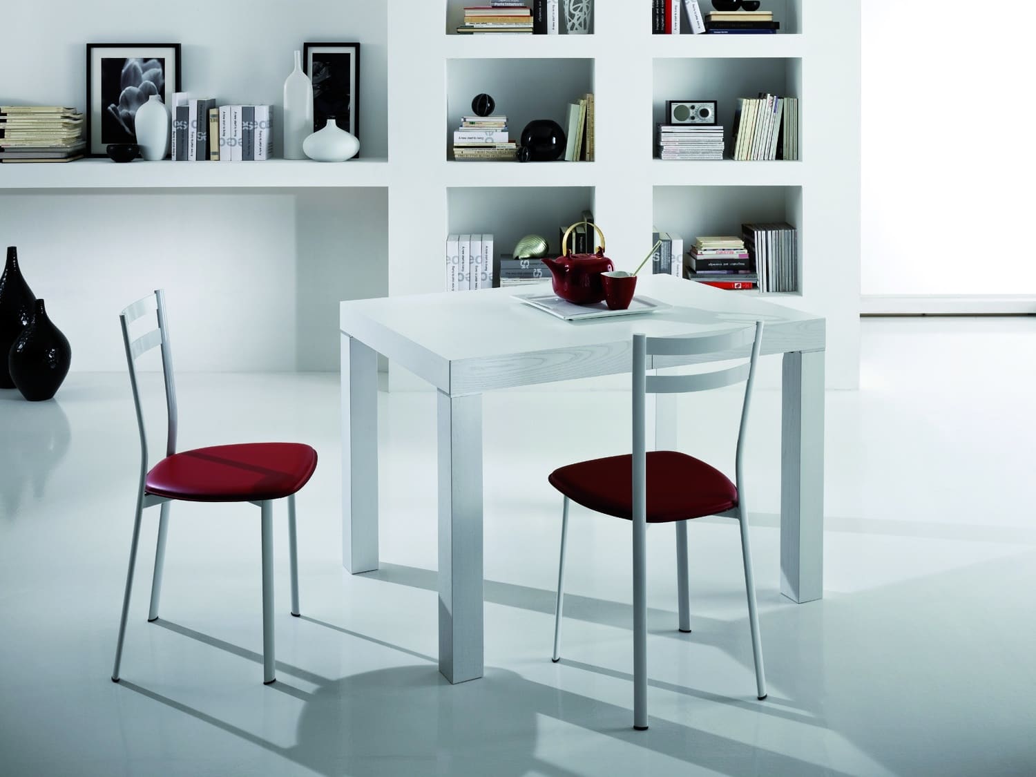 Tavolo fisso o allungabile al centro, con gambi sempre perimetrali. Il piano a lavorazione “folding” ha un bordo di 80 mm di altezza. Il piano e le allunghe sono disponibili in nobilitato (eccetto per le versioni 110, 180 e 200), laminato, o impiallacciato in Frassino o Rovere, con la versione “Rovere Spaccato” (RSP) che riproduce il vero legno vecchio. Il meccanismo di allungo sincronizzato è in acciaio zincato e alluminio, ed è bloccabile in qualsiasi posizione. Le allunghe sono contenute all’interno del tavolo (eccetto nella versione MAXI). I gambi sono disponibili in alluminio, legno massiccio o rivestiti in accordo con la finitura del piano, oppure in acciaio inox (dove possibile). Nella versione allungabile, una coppia di gambi è dotata di ruotino di scorrimento per facilitare l’allungamento (eccetto per i gambi in alluminio e inox).